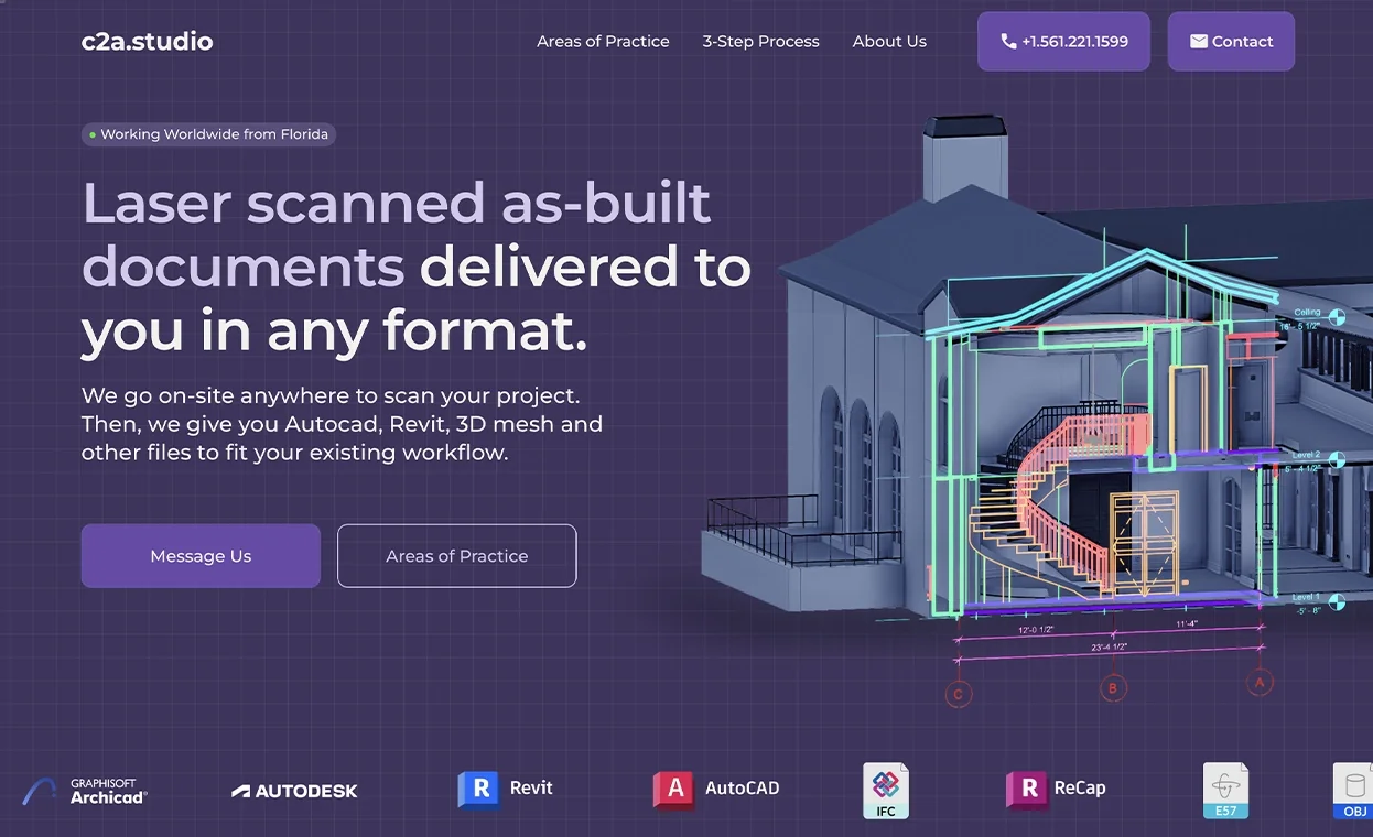 C2A Studio website was redesigned to showcase the brand’s precision 3D scanning and as-built documentation services. With a clean, technical design, it features CAD-inspired grids, a custom cursor, and interactive elements that reflect the studio’s focus on accuracy and professionalism.