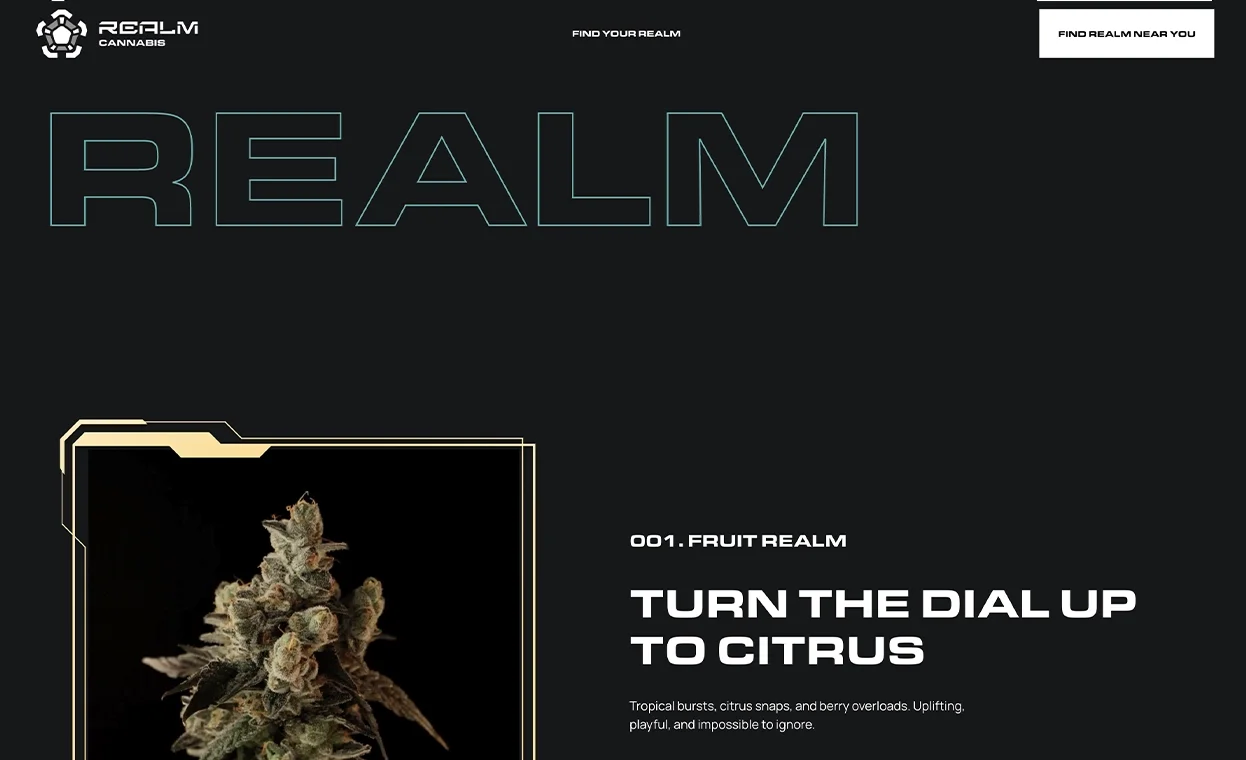 The REALM Cannabis website was created to reflect the new rebrand done during Q3 2025. With a streamlined UX made with a focus on story-telling, this website features numerous customized components, including a uniquely-designed mobile menu, along with custom on-scroll interactions and 3D graphics via Spline.