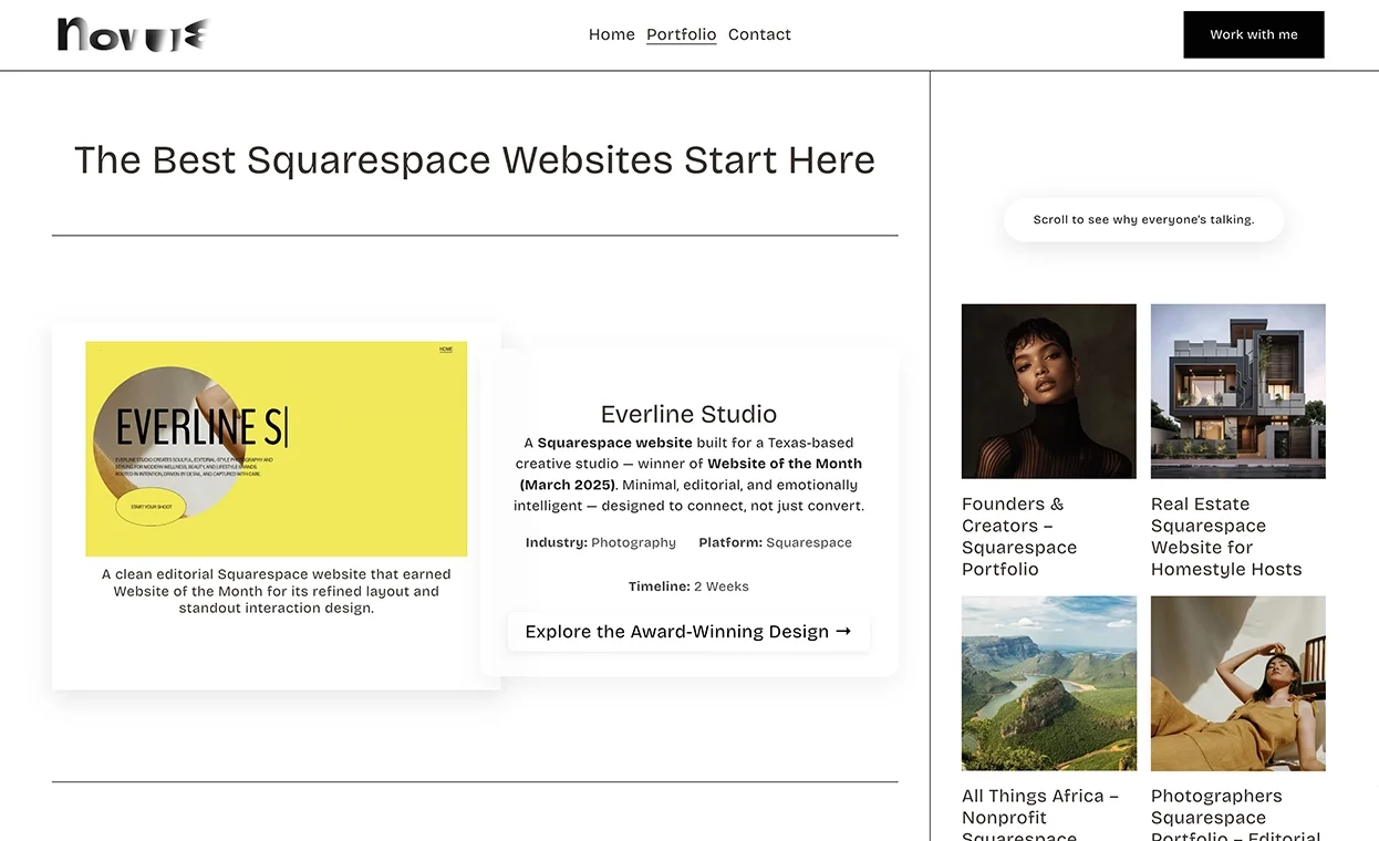 Novule is my studio website, created to share my journey as a designer and present my portfolio in a clean and calm way. The design combines gentle storytelling, subtle animation, and a simple layout that feels welcoming. It helps visitors understand my style, explore my work, and connect with me as potential clients. The goal was to build a site that feels modern, honest, and easy to navigate.