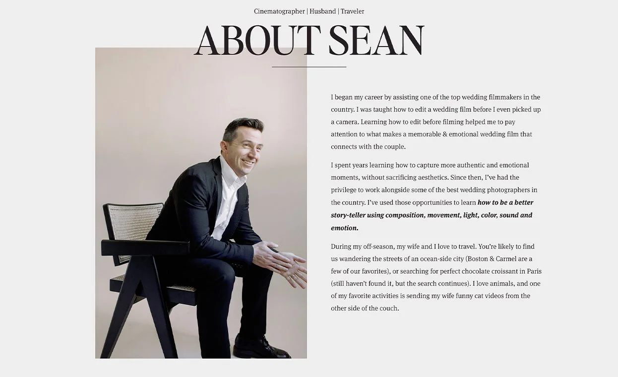 My client, a wedding videographer for high-end luxury couples, needed a website that reflected the elevated service he delivers. While many peers recommended Showit, he preferred the structure of Squarespace—so I set out to create a Showit-level experience within that platform. Using custom fonts, a non-traditional testimonial slider, video backgrounds, layered graphics, and varied depth of field, I crafted a bespoke, immersive site that felt both luxurious and modern. The result not only impressed the client but also had fellow industry professionals convinced it was built on Showit.